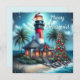 Tarjeta Festiva Navidades tropicales caprichosos faro rojo Verde a