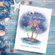 La carta de los Navidades tropicales temáticos de la playa incluye una isla de "arena" brillante, palmeras adornadas con luces de cuerda y Santa y renos que vuelan a través del mágico cielo nocturno, iluminado por la luna y las estrellas. Obra de KL Stock.