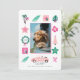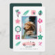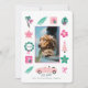 Celebra la temporada festiva con nuestra divertida tarjeta de fotos tropical, festiva y colorida. Nuestro diseño tropical festivo incluye una sola foto en el medio de la tarjeta para mostrar su propia foto familiar. La foto está enmarcada con varios ilustraciones temáticos de Navidades tropicales, entre ellos un convertible rosado, una corona de palmeras, palmeras con luces, presente, un arco de flores tropicales, etc. Las palabras fa la y let's roll se muestran sobre el convertible rosa. Todas las obras de arte contenidas en esta tarjeta de Navidades y vacaciones convertibles, de corte femenino y divertida, son obras de arte originales a mano de Moodthology Papery.