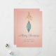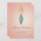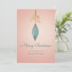 Personalice esta tarjeta con su nombre para obtener una tarjeta de Navidad única. Pinté a mano a estos simples Navidades verde azulados turquesa en baudible. Las hojas botánicas doradas suspenden un adorno vacacional sobre el fondo rosa claro. El elegante y moderno texto de los Navidades de la Marina y el nombre de la familia están en el color verde azul que combina. Espero que disfrutes de esta carta hecha con cariño.