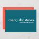 Sencilla y elegante "feliz navidad" cita la tarjeta de saludo con tipografía moderna en blanco sobre fondo azul de acero en un minimalista estilo escandinavo de diseño "scandi". La tarjeta puede ser fácilmente personalizada con su propio saludo de vacaciones, nombre familiar y año para hacer una tarjeta de vacaciones para navidades realmente hecha a medida para la temporada festiva! La parte trasera de la tarjeta está en un coral de tomate rojo complementario para un ambiente festivo divertido.
