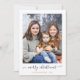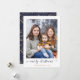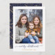 Navy Blue Gold Simple Script Modern Merry Christmas Photo Card con tus fotos favoritas y un guión sencillo pero elegante, Feliz Navidad. La parte trasera está decorada con un estampado festivo y elegante de hojas de Relieve metalizado dorado, pino y otras plantas botánicas de invierno sobre un fondo azul marino de invierno. ¡Perfecto para tus tarjetas de vacaciones este año! Póngase en contacto con nosotros en cedarandstring@gmail.com si necesita ayuda con el diseño o productos de coincidencia.