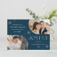Wish loved ones a happy holiday season by sending them a trendy holiday card designed by Late Bloom Paperie! The unique holiday card features two photos inside of a navy horizontal arch photo frame. "Joyful" is displayed in white modern lettering accented by hand-drawn snowflakes. Personalize the front of the Christmas photo card by adding a custom message, name, and year. The back of the multi-photo holiday card displays a navy snowflake pattern.
