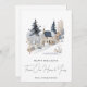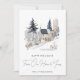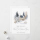 A rustic holiday card featuring a watercolor scene of a house on a snowy hill with pine trees and shrubbery and the editable headline "Happy Holidays, from our home to yours" in navy blue. Add a personal message to the reverse of the card.