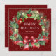 Tarjetas de vacaciones de negocios rojas personalizado con una cortina de color de bayas rojas y blancas, hueso, coníferas y ramas sobre un fondo rojo oscuro. Personalice fácilmente estas tarjetas acuarelas de vacaciones de negocios con el nombre de su empresa.