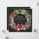Tarjetas de vacaciones de negocios de color negro personalizado con una cortina de color de bayas rojas y blancas, hueso, coníferas y ramas sobre un fondo negro. Personalice fácilmente estas tarjetas acuarelas de vacaciones de negocios con el nombre de su empresa.