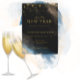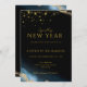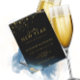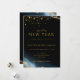 Invite a tu familia y amigos a tu fiesta de Año Nuevo brillante y celebra con nuestra hermosa invitación dorada brillante. El diseño presenta destellos dorados sobre un fondo negro abstracto de acuarela.