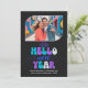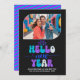 Tarjeta Festiva Neon Ice Hello New Year Blue Retro Photo