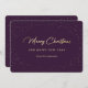 Elegantes tarjetas de vacaciones moradas y doradas con nieve dorada sobre fondo violeta. Personaliza fácilmente estas tarjetas de vacaciones minimalistas con tu nombre y texto familiar.