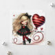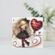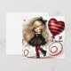 Tarjeta Festiva Niña caprichosa globo con corazón de brillo rojo