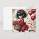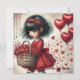 Tarjeta Festiva Niña sosteniendo una cesta corazones rojos brillan