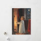 Tarjeta de vacaciones de arte fino de época producida originalmente a principios del siglo XX. La tarjeta muestra a una niña linda cuando se calienta las manos por la noche con una chimenea. En el exterior hay una luna llena y las medias tradicionales están colgadas del fuego. Esta impresión clásica reproducida se restauró digitalmente para reducir los puntos de edad y mejorar el color para lograr una calidad de impresión óptima. Mantener texto o personalizar según sus necesidades.