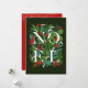 La palabra NOEL entre las hojas de invierno y las bayas sobre verde oscuro aparecen en la parte delantera de estas tarjetas de vacaciones y tu saludo personalizado en la parte trasera. COINCIDIENDO elementos de nuestra colección.