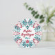Una tarjeta de vacaciones de estilo nórdico en tonos rojos y verdes profundos, personalizable con el año que elijas y tu texto personal.