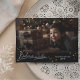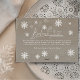 Celebre la temporada con esta elegante tarjeta de festividad fotográfica, diseñada en una orientación paisajística para mostrar maravillosamente su imagen familiar favorita. La parte frontal tiene un brillante borde de acento debajo de la foto (preferible una más oscura), donde el nombre de tu familia y el año pueden ser personalizados. Sutiles destellos festivos agregan un toque de magia, mientras que la parte trasera muestra un sentido mensaje navideño enmarcado por encantadores copos de nieve contra un clásico fondo negro. Una manera atemporal y elegante de compartir tus deseos más cálidos de los Navidades con tus seres queridos.