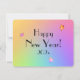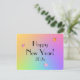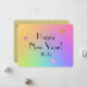 Envía alegría para que dure todo el año. Un fondo de gradiente de arcoíris colorido con estrellas iridiscentes brillantes y "Feliz Año Nuevo" en una fuente retro elegante, decora la parte delantera de esta tarjeta plana festiva. La parte posterior es de un falso oro brillante sólido con un mensaje de texto y un nombre elegante en una fuente manuscrita. Cambie fácilmente cualquier texto para hacerlo suyo utilizando la plantilla proporcionada. Las dimensiones son 4,25 "x 5,5". Vea "Acerca de este producto" para obtener más información. Hecho e impreso en EE. UU.