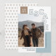 ¿Pudiste viajar finalmente? Comparte tu aventura con esta elegante tarjeta de vacaciones con foto. Cuenta con una superposición de texto de esquema moderno que dice "ESCAPE", junto con plantillas de texto para personalizar. Una paleta de colores de azul polvoriento, beige y azul oscuro teal da a estas tarjetas de Navidad un aspecto boho, perfecto para viajes al desierto o a la montaña (o cualquier vacaciones, en realidad). :) La parte trasera de la tarjeta contiene un patrón de sol boho en beige.