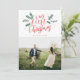 Tarjeta Festiva Nuestra primera foto con letras de manos recién ca