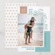 ¿Finalmente pudiste viajar? Comparte sobre tu aventura con esta elegante tarjeta de vacaciones con foto! Cuenta con un texto superpuesto con un diseño moderno que dice "ESCAPE", junto con plantillas de texto para personalizar. Un esquema de color de teal aqua, teal ahumado claro y coral terracota claro le dan a estas tarjetas de Navidad un aspecto playerito, perfecto para viajes tropicales (o cualquier vacaciones, en realidad). :) La parte trasera de la tarjeta contiene un patrón de sol boho en terracota claro.