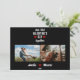Nuestro Primer El día de San Valentín Juntos Con 2 Fotos Tarjeta De Festividad Negra. Esta tarjeta tiene 2 fotos, tipografía moderna y de moda diciendo Nuestro primer El día de San Valentín juntos, 3 corazones rojos, nombres y año. Añade tus nombres, 2 fotos y el año y tu nota al revés.