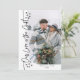 Tarjeta navideña moderna y elegante para los recién casados que celebran su primera Navidad juntos como marido y mujer, con un texto escrito a mano que dice "nuestro amor es el regalo" con estrellas dibujadas a mano. El fondo es blanco.