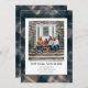 Tarjeta de vacaciones de cuadro de cuadros azul marino rústico de dirección de casa para el año nuevo