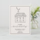 Este moderno diseño de ilustracion "Our New Home for the Holidays" presenta un diseño de vacaciones dulces y una casa de invierno festiva, en gris, con un fondo rosa y lujoso. En la parte posterior de la tarjeta se muestra una dulce masa de ramas de pino, bayas, hueso, corazones y más. Fácilmente personalizado, en tipografía escrita a mano. Derechos reservados The Holiday Shop, todos los derechos reservados.