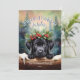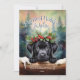 Esta adorable tarjeta de saludo de vacaciones incluye un lindo ilustracion de Cachorro Black Lab con una corona festiva de corona de hojaldre, pino y bayas, con copos de nieve cayendo suavemente sobre un fondo rústico de la Selva de Pinos de Nieve. El pequeño Black Lab Puppy está mirando sobre el tronco de nieve para saludar! El lúgubre texto "Merriest Holiday Wishes" agrega un cálido saludo estacional, y puede ser personalizado como quieras. El reverso está decorado con un clásico rayo de chapa que añade un toque tradicional al conjunto. Esta bonita y divertida tarjeta es perfecta para enviar vítores de vacaciones a la familia y amigos, y el nombre del personalizable y la fecha lo convierten en un placer personalizado.