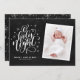 Oh, noche sagrada las estrellas brillan... Envíe saludos de vacaciones con esta tarjeta de foto de vacaciones de personalizable. Presenta letras del guión "Oh noche sagrada" con un patrón festivo en un falso pizarrón. Personalice agregando nombres, fotos y otros detalles. Esta tarjeta de vacaciones también será perfecta como anuncio de nacimiento de vacaciones.
