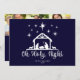 Bonita tipografía de Oh Holy Night con natividad en un fondo azul marino con 3 fotos en la parte posterior, así como un espacio para su mensaje de Navidad. Vea artículos coordinados como papel de regalo, etiquetas de regalo y más en nuestra tienda.