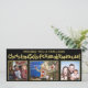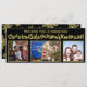 Esta divertida tarjeta de vacaciones políticamente correcta cubre todas las bases. El saludo dice "¡Deseándote un Fabuloso ChristmaSolsticHanukKwanzaa!" - fusionando las palabras Navidad, Solsticio, Janucá y Kwanzaa en una sola palabra larga. El texto está escrito en una fuente dorada caprichosa con fondo negro, y hay espacio para subir tres fotos. La parte trasera tiene copos de nieve dorados con espacio para un breve mensaje y tu firma. ¡Una forma linda e inclusiva de enviar Felices Fiestas!