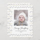 ¡Envíe personalizable y saludos personalizados de vacaciones a amigos, colegas y familia en simples, minimalistas, elegantes, divertidas, festivas y modernas tarjetas fotográficas! Un bello marco de variedad de luces de adornos de Navidad doradas y negras rodea tu foto en papel de borde de vieira redondo. El saludo " Feliz Navidad " está escrito en caligrafía elegante, y debajo se muestra el mensaje de bienvenida de su personalizado de nombre familiar en tipografía moderna. Revertir para revelar un hermoso fondo de patrón de adornos de navidad completa.