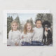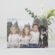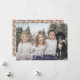tarjeta de vacaciones de foto personalizado con un elegante tipo de letra de guión y un patrón de ornamento en la parte posterior.