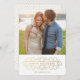 ¡Envíe alegría de vacaciones con una tarjeta de foto de moda! Este elegante diseño presenta un marco ornamentado con un falso Relieve metalizado dorado sobre un fondo blanco de nieve. Para una personalización más avanzada de este diseño, simplemente seleccione el botón "Personalizar It" de arriba. Toda la fotografía se muestra sólo como muestra y no se puede revender. Este producto sólo se pretende adquirir una vez que las fotos de muestra se sustituyan por las propias imágenes.