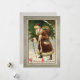 Imagen nostálgica restaurada y realzada de Santa entregando regalos en la nieve con colores vibrantes y marco de plata dimensional ornamentado. Imagen complementaria al reverso con texto de personalizable.