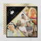 Esta moderna tarjeta de Navidades brilla a través de un divertido diseño de 3 fotos, escritura de moda y tipografía minimalista, así como el uso fresco del rústico y afligido ilustracion del árbol de Navidad. Por favor, personalizar con tus 3 fotos favoritas, nombre de familia y año - y la oportunidad de cambiar el saludo también. El fondo tiene un elegante patrón de rayas doradas. Esta es la versión negra.