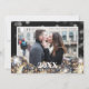 Tarjeta horizontal de Año Nuevo Feliz de Oro y Negro. Celebre el nuevo año con estilo con este diseño de moda negro y dorado con una audaz bola de disco en el centro superior del frente. "Feliz Año Nuevo" está escrito en una mezcla de fuentes séricas doradas y blancas, con espacio debajo para personalizar con un nombre o nombres. El fondo negro aporta un toque moderno y elegante sin ningún purpurina, solo un color audaz para un look pulido. En la parte trasera, el mismo diseño de discoteca festivo continúa, con espacio para una foto y una cita del año. Todos los textos y colores son totalmente personalizables, lo que hace de esta una gran elección para enviar deseos de Año Nuevo a amigos, familiares o colegas.