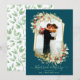 Derechos reservados © Socialite Designs Inc. & LICENCORS - Esta elegante tarjeta de fotos de vacaciones cuenta con ramas de acuarela y fondo de patrón de hojas en la parte posterior. El marco fotográfico tiene un aspecto geométrico de Relieve metalizado dorado. Agrega tu foto especial para enviarla a tu familia y amigos para desearles unas vacaciones felices.