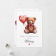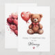 Celebre el primer Día de San Valentín de una madre con esta hermosa y emotiva tarjeta de recuerdo. El diseño presenta un oso de peluche marrón suave y realista adornado con un lazo rosa de estilo satinado, sosteniendo un vibrante globo rojo con forma de corazón. Es una forma dulce y emotiva para que un niño (o pareja en nombre del niño) honre a una nueva madre en este hito especial. Con su fondo blanco limpio y tipografía sofisticada, esta tarjeta equilibra perfectamente el encanto lindo con la elegancia atemporal.
