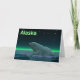 Un momento de paz en la larga noche ártica. Un oso polar descansa en el borde de un área abierta en el hielo a la deriva. Las Luces del Norte brillan en la distancia; estrellas brillantes brillan en lo alto. Texto que dice "Alaska" aparece en verde y blanco brillante. Los osos polares están en peligro de extinción. ¿Cuánto tiempo más podrán ocurrir escenas como esta? Por favor, ayude a salvar a los osos polares de la extinción.