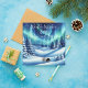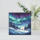 Esta hermosa escena invernal es la forma perfecta de difundir alegría navideña. Esta tarjeta preciosa presenta a un oso polar perplejo observando las luces del norte que cruzan el cielo. Esta tarjeta es la forma perfecta de enviar deseos de Navidad a familiares y amigos.