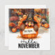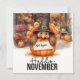 Celebre el Día de Acción de Gracias con esta fantástica tarjeta de vacaciones de otoño que incluye un mono pavo acuático en una acogedora tienda florista llena de calabazas, flores de otoño y decoración de temporada. Perfecto para enviar cálidos deseos a amigos y familiares, agregar encanto festivo a sus saludos de Acción de Gracias, o deleitar a los amantes de los gatos y animales con un diseño de otoño único. Ideal para los amantes de los gatos, amigos, familia, compañeros de trabajo o cualquiera que disfrute de los saludos temáticos de Acción de Gracias y otoño.