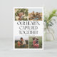 Modern Valentine's Day photo template card featuring a typography text that says "our hearts captured together" with 4 of your pictures. You can add another picture and a message on the back of the card. White.