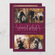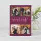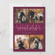 Elegante y moderna tarjeta de vacaciones con un texto de tipografía que dice "pacífico, juguetón, alegre" con 4 fotos cuadradas. Añade otra foto al dorso junto con tu mensaje. El fondo es arándano.