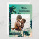 This stunning holiday photo card features a painting of palm trees for the background and a rectangular (almost square) photo template. Stylish typography reads, "Mele Kallikimaka." Easy to personalize! The back contains a sand design over a white background. The perfect beach themed Christmas cards to send to family and friends!