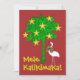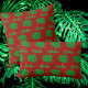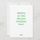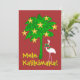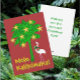 Palmeras verdes y texto Mele Kalikimaka sobre un rico fondo rojo de Navidad. Una divertida apariencia tropical para sus tarjetas navideñas tropicales personalizadas. Personalice el texto en la parte frontal y trasera.
