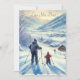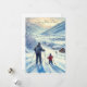 Tarjeta Festiva Papá e hijo lindos esquiando juntos acuarela