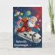 Acércate a la temporada festiva con esta tarjeta de Navidad de Papá Noel espacial que muestra a Papá Noel llevando alegría navideña a nuevas alturas a la velocidad de un rayo.