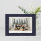 Tarjeta de vacaciones con fondo de fondo de fondo de fondo con rayas azules y doradas con una foto familiar acompañada de un saludo de vacaciones y tu nombre y año en una fuente sans serif.