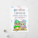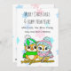 Una mano adorable lo dibujó a él y a sus búhos, sentados en una rama de árbol en invierno con fondo de copos de nieve rosa bonito, azul y verde azulado. Agregue el saludo de su personalizado y los nombres en el área de personalización.